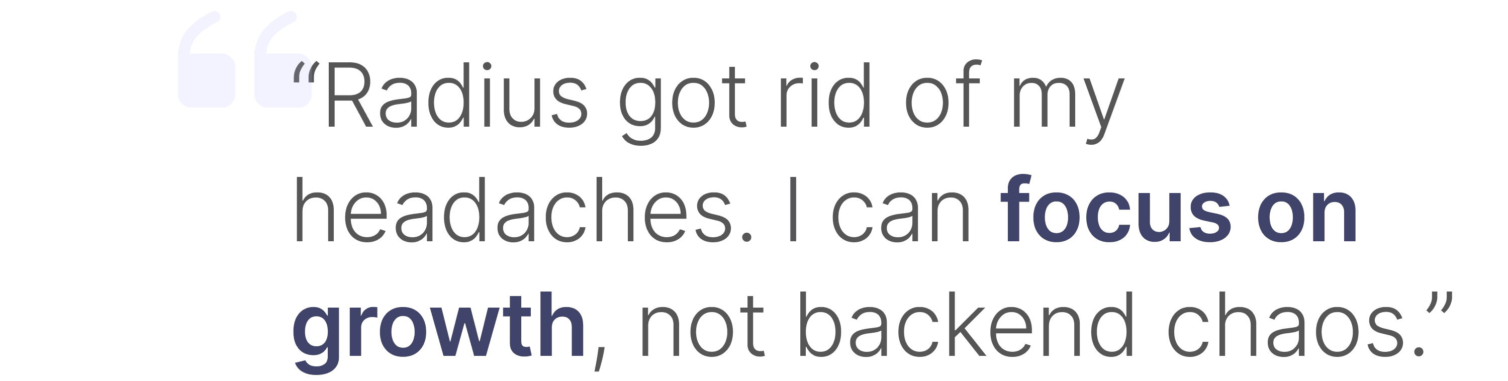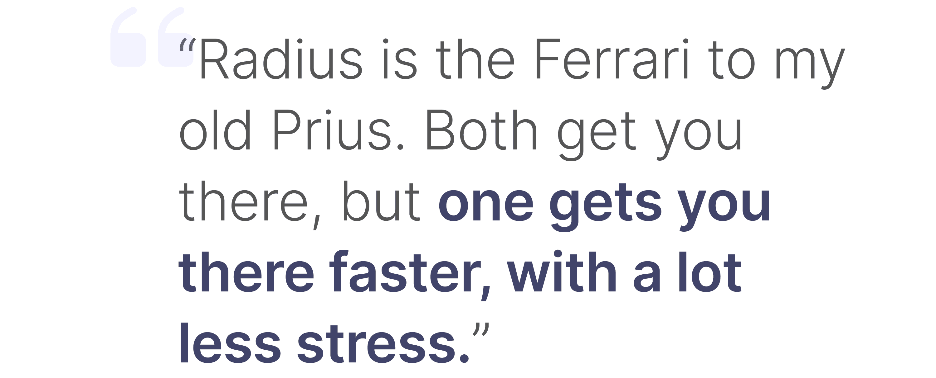 “Run, don’t walk. Learn to lose quick. Just because you’ve invested in your current setup doesn’t mean you should stay there. If you’re serious about growing faster and smarter, Radius is the move.”