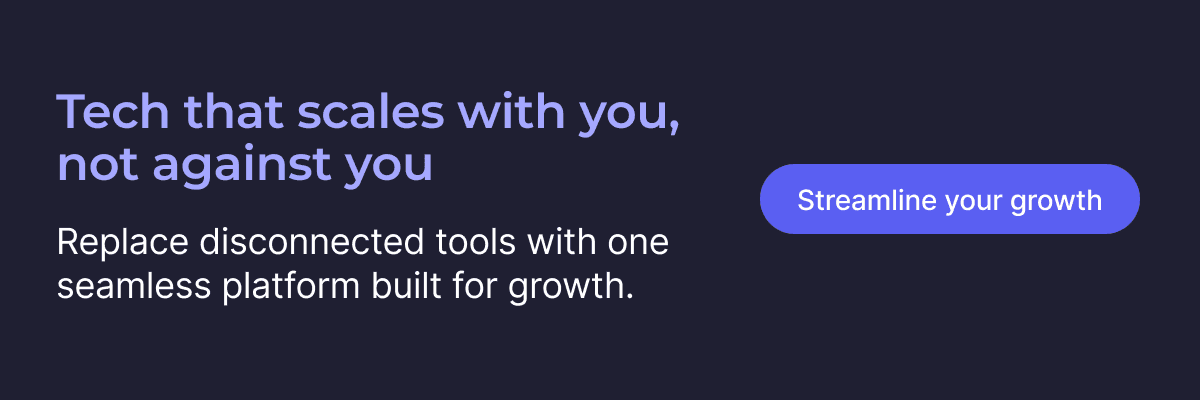 At the root of Cyrus’ frustration was his tech stack. While he made sure to implement the best platforms available at the time, they were all bolt-on products connected through APIs. This created a cumbersome system where he could only hope each piece of the patchwork system would work together seamlessly. Too often, they did not.